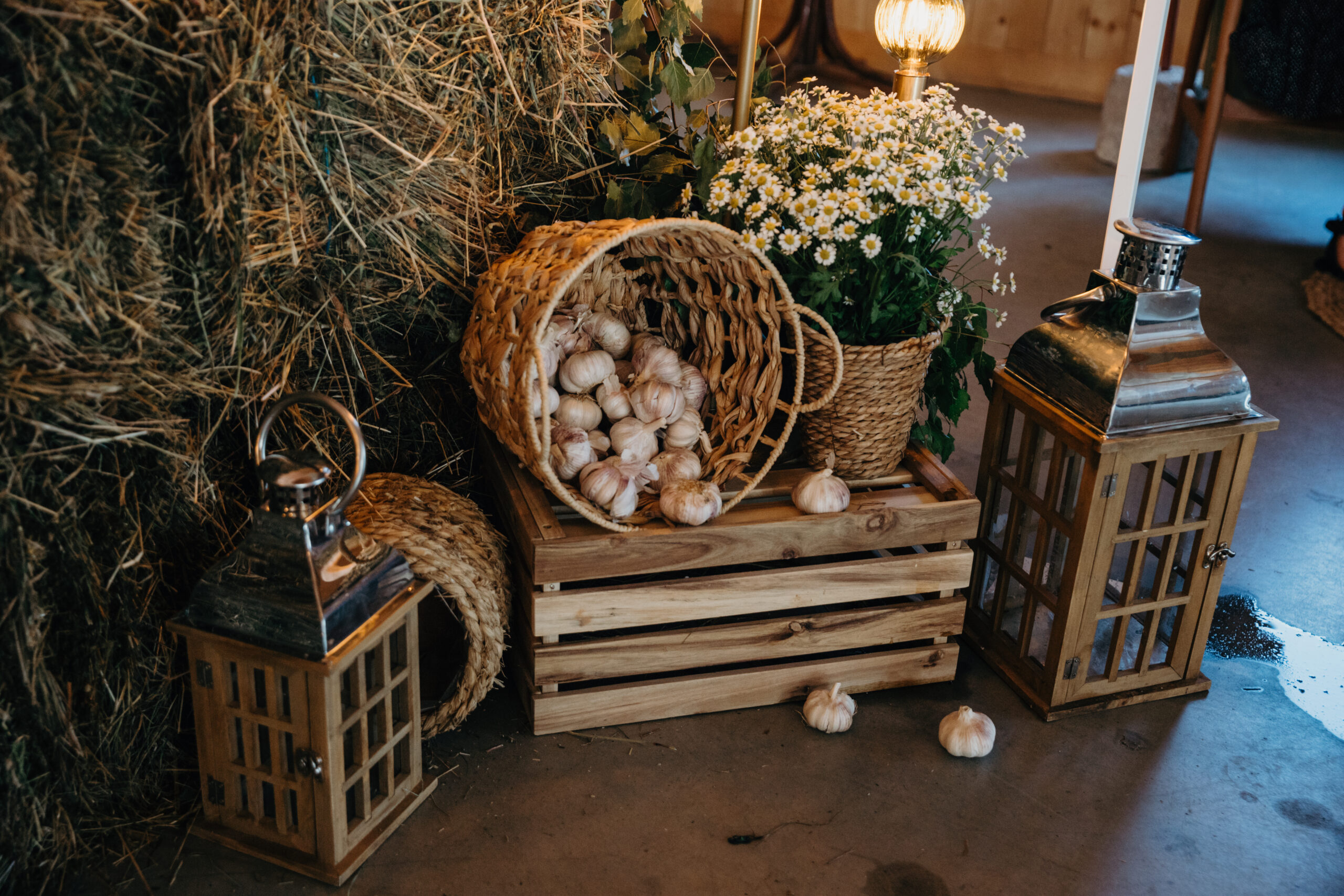 We found a stunning outdoor terrace with cozy guest cabins just 30 minutes from Kaunas Cathedral, where we exchanged our vows. Because our vision was so clear, we had no trouble communicating it to our decorator – from the floral arrangements to the bar décor, which simply had to include little hay bundles.